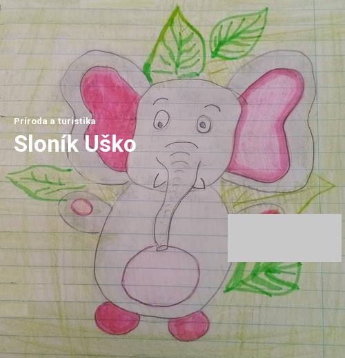 Slony sa nachádzajú najmä v Afrike, ale samozrejme ich môžeme nájsť aj u nás, na Slovensku, v ZOO. Slon je sivej farby. Váži cca 5-7 ton a meria 5 metrov. Jeho „chvostík“ má 1 meter. Rád sa váľa v bahne alebo vo vode so svojimi kamarátmi. Má veľké kly zahnuté dohora. Uško je cicavec a živí sa najmä: ovocím, kôrou rôznych kríkov, trávou, listami či konármi stromov. Uško za celý deň vypije okolo 200 litrov vody. Žije v stádach, čiže aj so svojou rodinou a priateľmi.