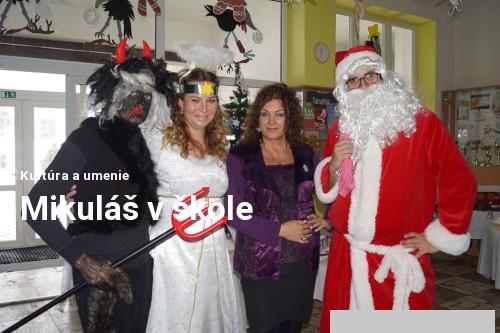 Je 6. december a v tento krásny zasnežený deň nás v našej škole navštívil samotný Mikuláš aj so svojimi pomocníkmi - čertom a anjelom.