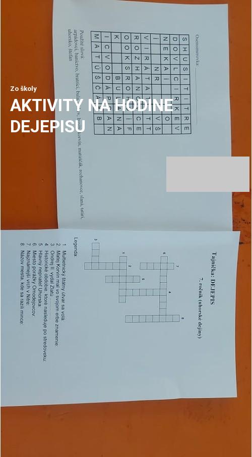 Žiaci VII.B triedy si na hodine dejepisu zopakovali uhorské dejiny, a to prostredníctvom aktivizujúcich metód. Lúštili tajničky, osemsmerovky a vypracovali PL. Vyučovanie dejepisu tak bolo obohatené o zaujímavé aktivity, ktoré rozvíjajú kreativitu, komunikáciu, súťaživosť žiakov. Všetky aktivity zvládli žiaci VII.B na výbornú. Boli aktívni a zopakovali si dejiny netradičnou, zábavnou formou.