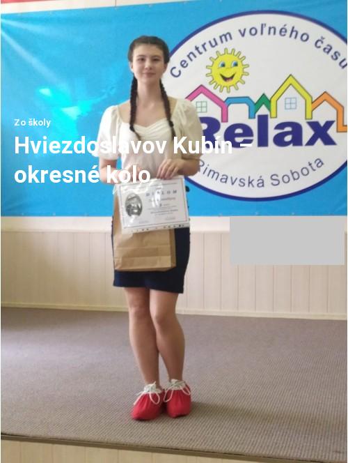 29. marca 2022 sa konalo okresné kolo najstaršej a najprestížnejšej súťaže v umeleckom prednese Hviezdoslavov Kubín. Umelecký prednes je prostriedkom na vyjadrenie vlastných pocitov, záujmov, názorov a postojov prostredníctvom zvolených literárnych textov a vlastného rečového prejavu. Osobnostná, názorová a estetická sebaprezentácia na verejnom vystúpení vedie interpreta k rozvíjaniu jeho predstáv, emócií, myslenia a k zdokonaľovaniu jeho reči, výrazu i kontaktu s publikom. V Centre voľného času Relax na Hviezdoslavovom Kubíne našu školu reprezentovali: Ariana Pepřicová, IV.A Filip Lehocký, IV.C Nela Tolnaiová, V.B Oliver Magic, VIII.B Zuzana Jánošíková, IX.B Ocenenie získali: Ariana Pepřicová, 2. miesto, I. kategória, próza Zuzana Jánošíková, 3. miesto, III. kategória, poézia Arianka a Zuzka zároveň postupujú do regionálneho kola, kde im budeme držať palce! Všetkým súťažiacim patrí veľká pochvala za ich usilovnú prípravu a odvahu vystúpiť pred publikum. Rovnako ďakujeme vyučujúcim, ktoré venovali svoj čas príprave recitátorov.