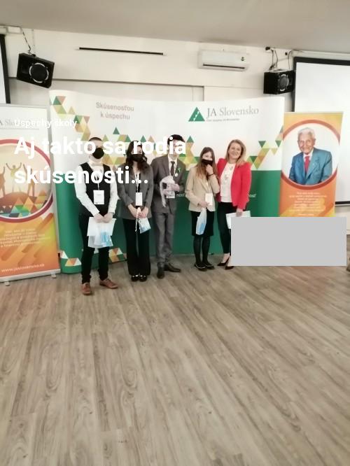 Dňa 22. 3. 2022 sa štyria žiaci našej školy: Nina Hajková, Tímea Jankulová, Samuel Kuczman a Viktória Lancíková zúčastnili v Banskej Bystrici súžaže poriadanej JA Slovensko, n. o. zameranej na finančnú gramotnosť. 60 žiakov z 15-tich škôl riešilo problém, ako naučiť ľudí hospodáriť s peniazmi. Odborná porota ocenila 4 najlepšie tímy. Naša žiačka - Nina Hajková spolu so svojím tímom získala 4. miesto. Blahoželáme.