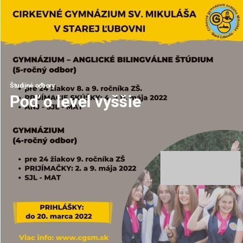 V budúcom školskom roku otvárame dve triedy v odboroch: - gymnázium - gymnázium – anglické bilingválne štúdium Všetky podstatné informácie o prijímacom konaní nájdete v infografike a na tomto odkaze.