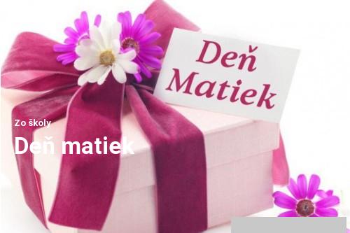 História Dňa matiek siaha až do obdobia antiky. V starovekom Grécku oslavovali ženu ako darkyňu života už 250 rokov p. n. l. v podobe slávností na počesť matky všetkých bohov – bohyne Rhey. Oslavy trvali obyčajne tri dni – od 15. do 18. marca. Starovekí Rimania oslavovali sviatok Matronalia, ktorý bol zasvätený bohyni Juno.Za predchodcu Dňa matiek v jeho dnešnej podobe možno považovať tzv. Nedeľu matiek (Mothering Sunday), ktorú začali oslavovať 16. storočí v Anglicku. V čase sviatku, ktorý bol stanovený na štvrtú nedeľu počas veľkonočného pôstu, sa mohlo služobníctvo žijúce v príbytkoch svojich pánov vrátiť domov k svojim matkám a stráviť s nimi deň. V novodobej histórii ľudstva sa Deň matiek dostal do povedomia na prelome 19. a 20. storočia, a to vďaka Američanke Anne Marie Jarvisovej. Po tom, ako v roku 1907 zomrela jej matka, začala viesť kampaň za vyhlásenie dňa venovaného matkám. Už o dva roky neskôr tento sviatok oslavovali v 45 štátoch USA. 8. mája 1914 iniciatíva vyústila do oficiálneho vyhlásenia druhej májovej nedele za Deň matiek Kongresom USA. Prezident Woodrow Wilson podpísal neskôr dokument, v ktorom bol Deň matiek vyhlásený za celoamerický národný sviatok. Dátum druhej májovej nedele sa rozhodli prijať za svoj takmer všetky krajiny na svete. V Československu sa Deň matiek začal oslavovať v roku 1923, a to najmä zásluhou Alice Masarykovej, dcéry prezidenta T. G. Masaryka a emancipovanej predsedníčky Československého červeného kríža. V 50. rokoch boli oslavy Dňa matiek v komunistickom Československu a ostatných proruských krajinách nahradené marcovým Medzinárodným dňom žien. Tradícia Dňa matiek na Slovensku bola obnovená až po roku 1989, kedy sa začal sláviť druhú májovú nedeľu v roku.