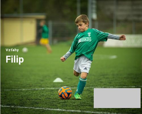 Vídame sa každý deň. Je nezabudnuteľná osobnosť našej rodiny. Prekypuje radosťou. Pôsobí serióznym dojmom. Keď má dobrú náladu, k najbližším sa správa dobre. Ak má zlú náladu, je dosť neznesiteľný. Voči ľuďom je milý a slušný. Má rád najmä veterány, hru na počítači, spoločenské hry, zvieratá a bicyklovanie. Učí sa dobre, hoci niekedy je poriadne lenivý. Chodí na klavír, ale cvičiť sa mu veľmi nechce. Asi z neho nebude klavírny virtuóz. Rád si s chalanmi zahrá futbal. Filip nie je veľmi vysoký, ale nie je ani najnižší. Má husté krátke vlasy, ktoré sú stále strapaté. Nosí čierno-tyrkysové okuliare, ktoré mu dodávajú vážnosť. Jeho oči sú sivomodré s dlhými mihalnicami, k tomu malý pekný nos a nevýrazne krojené pery. Oblieka sa športovo. Najčastejšie nosí tmavomodré rifle a farebnú mikinu s dlhým rukávom. V lete si nikdy nezabudne žltú šiltovku z včelárskeho tábora.