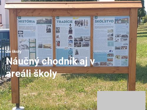 Určite budú tieto tabule výbornou učebnou pomôckou pri výuke regionálnej výchovy, dejepisu, geografie i ďalších predmetov. Grafickú úpravu aj týchto tabúľ urobil pán Borodovčák a samotnú výrobu a osadenie stojanov realizoval p. Pospíšil za aktívnej spolupráce s p. učiteľom Slosiarikom.