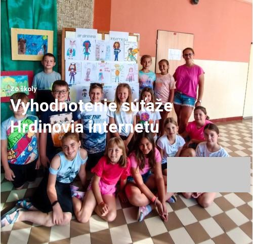 Vyhodnotenie súťaže Hrdinovia internetu Začiatkom mesiaca jún sme sa so žiakmi IV.A triedy zapojili do súťaže Hrdinovia internetu. Súťažná úloha žiakov bola nakresliť, ako podľa nich môže vyzerať hrdina internetu. Po diskusii k téme internetová bezpečnosť, všetci žiaci dostali priestor na prejavenie svojej kreativity a nápaditosti, ktorá mala obrovský úspech. Žiaci sa s ich výtvormi umiestnili na úžasnom 5. mieste, spomedzi všetkých zapojených škôl. Vyhrali internautské desiatové boxy, ktoré im urobili obrovskú radosť. Celej triede IV.A k výhre srdečne blahoželáme a prajeme veľa ďalších úspechov v nasledujúcom školskom roku.
