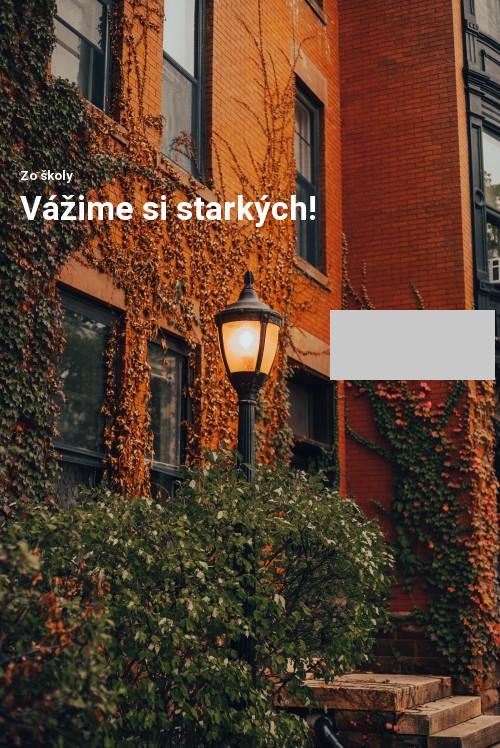 Náš život sa podoba knihe, ktorú môžeme čítať iba raz. Málokedy si uvedomujeme, že čas naozaj uteká. Október je mesiacom úcty k starším, to ale neznamená, aby sme si starkých nectili aj inokedy.