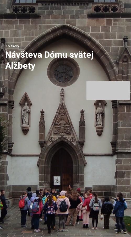 Dominantou nášho mesta je gotická katedrála Dóm sv. Alžbety, najväčší kostol na Slovensku s kapacitou vyše 5 000 ľudí. Žiaci našej školy v rámci NBV z V.B, V.C, VI.A, VI.B dňa 9.11.2022 navštívili túto katedrálu. Pani sprievodkyňa nás oboznámila s históriou tejto nádhernej stavby a pán kaplán Jakub nám porozprával o relikviách 7 svätých, ktoré sa tu nachádzajú. V krypte, kde je pochovaný kardinál J. Tomko, sme si v tichej modlitbe spomenuli na otca kardinála i na našich zosnulých. Po prehliadke každý žiak mohol zájsť na to jeho najobľúbenejšie miesto v chráme a načerpať pokoj, silu a radosť, ktorú sme si odniesli aj do našich rodín.