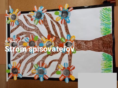 V školskej knižnici sme si pre žiakov prvého stupňa pripravili súťažné popoludnie s názvom Strom spisovateľov. Žiaci si vybrali papieriky s menami našich známych slovenských spisovateľov a mali k nim priradiť ich fotografie. Pomocou internetu hľadali informácie o ich dielach. V knižnici vyhľadali a vybrali knihy, ktoré od týchto spisovateľov máme. Maľovali si obrázky z týchto knižiek a vytvorili kvietky s fotografiami a názvami kníh spisovateľov, ktoré sme potom prilepili na strom.