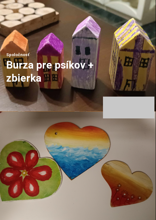 Milí naši žiaci, rodičia, kamaráti školy, všetci máte možnosť dobrovoľne prispieť akoukoľvek sumou do pokladničky umiestnenej na burzičke alebo za príspevok si ako poďakovanie smiete vybrať jednu z tam ponúknutých vecí, ktoré s láskou vyrábali žiaci našej školy pre tento účel. Psíkom za nazbierané peniaze nakúpime granulky, konzervy a iné veci, ktoré súrne potrebujú.