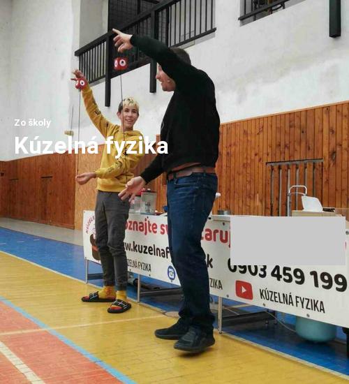 V prvom polroku sa na našej škole uskutočnilo zážitkové vyučovanie s názvom "Kúzelná fyzika". Michal Figura nám ukázal veľmi veľa pokusov. Volával si žiakov, s ktorými postupne prekonával logické úlohy a vysvetľoval zákony fyziky. Vyskúšali sme si napríklad pokusy s héliovým balónom, ale aj so zaujímavými guličkami...