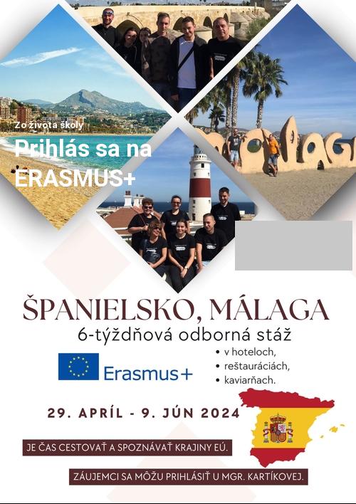 V mesiaci marec vyberáme 4 žiakov na odbornú stáž ERASMUS+ do Španielska - Malága.