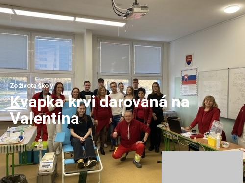 Darovanie krvi je jednoduchý a bezpečný spôsob, ako výrazne zmeniť životy ľudí. S prichádzajúcim Valentínom sa naši študenti a zamestnanci školy, 7. februára 2024 rozhodli darovať v kvapke krvi i trochu lásky. Táto kvapka následne putuje a rozdáva ďalšie šance, úsmevy, s ktorými odchádzalo i mnoho z nás. Možnosť pomoci druhým sme mali priamo v priestoroch nášho Golianka, kde darovalo krv 49 darcov, mnoho z nich bolo prvodarcov, Veľká vďaka patrí nielen všetkým darcom a ochotným študentom, ktorí pomáhali pri organizácii tejto akcie a boli psychickou oporou našim darcom, ale aj odbornému a milému personálu z NTS, ktorý celú akciu vždy spríjemní.