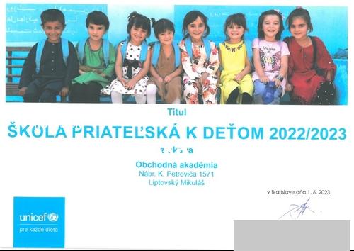 Pomoc je veľmi náročná a nedocenená práca. Práca ľudí, ktorí pracujú v prospech iných nie je jednoduchá a naráža na množstvo prekážok. Preto aj našich študentov učíme pomáhať a vykonávať dobrovoľníctvo, aby aj takýmto spôsobom priniesli prospech núdznym. Tento rok sme sa viackrát podieľali na charitatívnych a dobrovoľníckych aktivitách a v rámci programu UNICEF sme sa okrem realizácie zbierok a dobrovoľníctva venovali viac aj téme práv dieťaťa. A za našu činnosť získala naša škola titul ŠKOLA PRIATEĽSKÁ K DEŤOM.