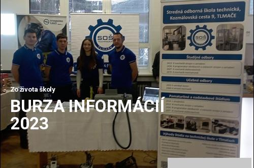 Tento rok sa opäť Burza informácií konala 30.11.2023 v priestoroch ÚPSVaR v Leviciach. Burza informácií je výborným prezentačným priestorom pre stredné školy, ktoré propagujú svoje študijné odbory a predstavujú záujmy a ciele škôl. Ďakujeme Saške Bednárikovej a Adamovi Kunikovi, ktorí spolu s Ing. Kunikom a Bc. Lackom zastupovali na burze našu školu. Potešila nás informácia, že o štúdium na našej škole je zo stany žiakov 9. ročníka veľký záujem.