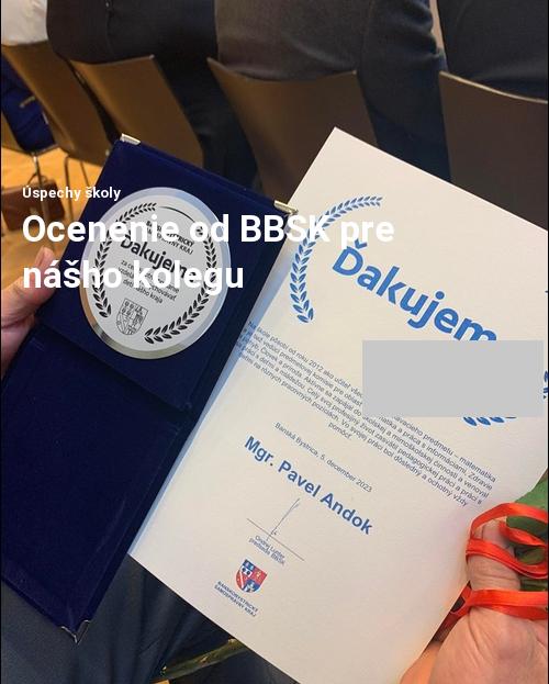 Náš kolega, skvelý matematikár Mgr. P. Andoka za celoživotné poslanie vzdelávať a vychovávať mladých ľudí získal ocenenie od BBSK- ďakujeme za prínos do našej školy, svedomitú prácu a odovzdané vedomosti.