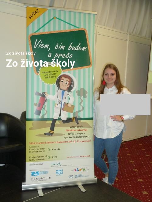 V literárnej súťaži „Viem, čím budem a prečo“ sme obsadili I. miesto v kategórii stredných škôl a gymnázií, súčasne sme boli medzi študentmi ocenenými predsedom KSK za výsledky v oblasti vedomostí a odborných zručností, za úspechy v odborných aj literárnych súťažiach.