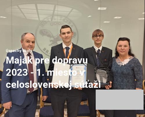 Naši žiaci Norbert Hegyközi a Kristián Kováč z III.KM triedy získali v Bratislave dňa 15.11.2023 cenu ministra dopravy Slovenskej republiky za 1. miesto v celoslovenskej súťaži Maják pre dopravu.