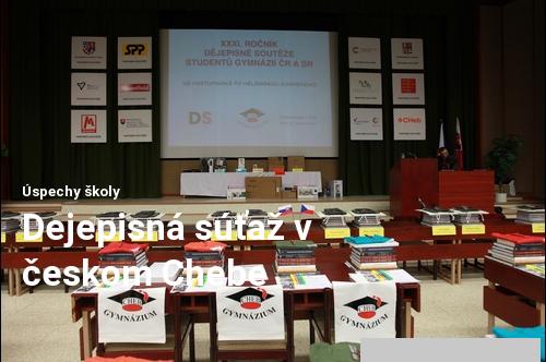 V dňoch 22. – 24. 11. 2023 sa náš trojčlenný tím v zložení Viktor Lukács - III. B, Natália Labovská - VIII. OKA a Ladislav Bánovský - III. C, spolu s pani profesorkou Katarínou Michalíkovou, zúčastnil finálového kola Dejepisnej súťaže českých a slovenských gymnázií v Chebe. Na túto súťaž sa kvalifikovali úspechom v krajskom kole. Celkovo sa do súťaže zapojilo viac ako 300 gymnázií z Českej aj Slovenskej republiky. O tom, že je to vysoko cenená súťaž, svedčí aj množstvo významných osobností, či už z historickej obce, z politického či kultúrneho života, ktorí túto súťaž podporujú.