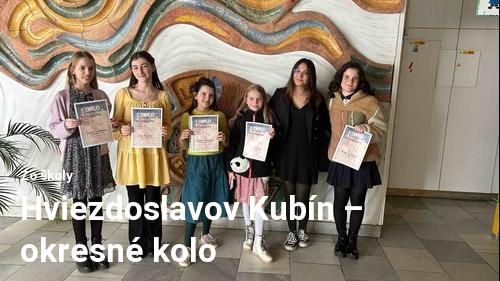 Dňa 27. 3. 2024 sa v CVČ na Popradskej 86 v Košiciach uskutočnilo okresné kolo recitátorskej súťaže Hviezdoslavov Kubín. Súťaže v umeleckom prednese poézie a prózy sa zúčastnili aj naše víťazky školského kola žiakov I. a II. stupňa.