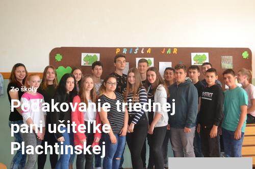 Poďakovanie triednej pani učiteľke Plachtinskej