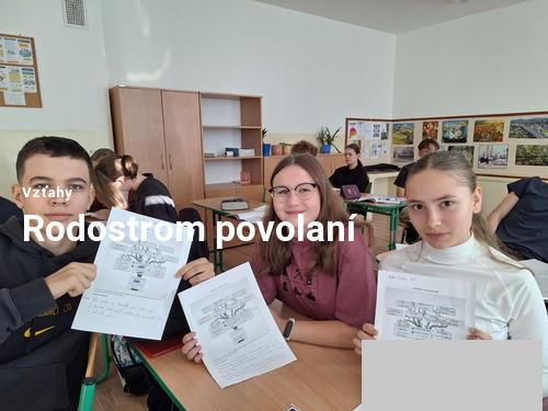 Koncom októbra a v prvej polovici novembra sme na hodinách občianskej náuky v 9.A a v 9.B triede uskutočnili aktivitu: Rodostrom povolaní v rodine. Každý žiak vypracoval strom povolaní vo svojej rodine. Žiaci diskutovali so svojimi rodičmi a prarodičmi. Zapísali si povolania svojich rodičov, prarodičov a príbuzných. Svoju prácu prezentovali a zistili možnú podobnosť v schopnostiach, postojoch, záujmoch a zručnostiach medzi nimi a rodinnými príslušníkmi. Vyjadrovali svoje názory a postoje. Uvedomili si vplyv svojich rodičov na svoj výber povolania, pretože rodič je vzorom, ktorý sprostredkúva deťom životné a pracovné hodnoty aj hodnotu vzdelania.