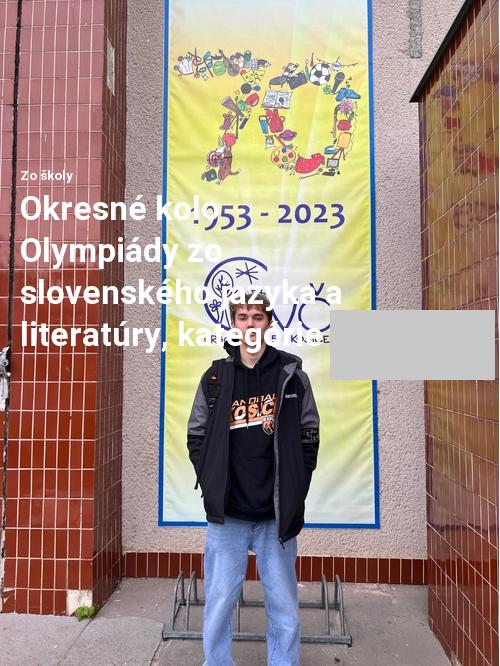 Dňa 13. 11. 2024 CVČ, EP Popradská 86 v Košiciach, zorganizovalo okresné kolo Olympiády zo slovenského jazyka a literatúry, kategórie C pre žiakov ZŠ a OG, na ktorom sa zúčastnil aj náš víťaz školského kola Olympiády zo slovenského jazyka a literatúry, Martin Imro, žiak IX. A triedy. Súťažiaci sa popasovali s náročnými úlohami, písomným testom, slohovou úlohou a ústnou odpoveďou. Aj keď sa nám nepodarilo dostať na stupne víťazov, Martinovi ďakujeme za úspešnú reprezentáciu našej školy.