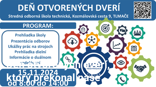 Chceme srdečne poďakovať všetkým, ktorí prispeli k úspešnému priebehu nášho Dňa otvorených dverí. Zvlášť vďační sme organizátorom - pedagógom, žiakom, ktorí svojim nasadením a profesionalitou zabezpečili hladký priebeh akcie. Vďaka vašej práci sme vytvorili nezabudnuteľný zážitok pre všetkých zúčastnených. Veľké poďakovanie patrí aj rodičom, ktorí podporili svoje deti a umožnili im zúčastniť sa tohto podujatia. Vaša angažovanosť a záujem o vzdelávanie sú pre nás veľmi cenné. Chceli by sme sa tiež poďakovať všetkým žiakom základných škôl, ktorí prišli, aby spoznali našu školu a zistili, čo všetko im môžeme ponúknuť. Vaša zvedavosť a nadšenie sú pre nás veľkou motiváciou. Na záver chceme vyjadriť úprimné poďakovanie aj zástupcom firiem, ktorí sa zúčastnili a odprezentovali svoje spoločnosti. Vaša prítomnosť obohatila náš deň a poskytla žiakom a rodičom cenné informácie o možnostiach uplatnenia po skončení štúdia.