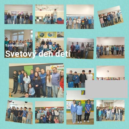 Každoročne si 20. novembra pripomíname podpísanie Dohovoru o právach dieťaťa  Organizáciou Spojených národov.    Pri tejto príležitosti sa oslavuje Svetový deň detí a tradične sa konajú rôzne podujatia  na podporu tejto myšlienky. Napríklad sa rozsvietia “Modré svetlá UNICEF”, ktoré  osvetlili významné budovy alebo pamiatky na modro po celom svete. U nás v  Košiciach to bol Dóm sv. Alžbety.  Aby sme aj my mohli NAŠU ŠKOLU PREMENIŤ SYMBOLICKY NA MODRO, naši  žiaci sa obliekli DO MODRÉHO OBLEČENIA. Táto aktivita sa celosvetovo nazýva  “Turning the school blue“.   Okrem toho sme si pripomenuli Svetový deň detí aj rôznymi aktivitami. Žiačky VII. C  si pripravili pre tretiakov besedu o detských právach spojenú s rôznymi úlohami, kde  spájali svoje práva so zodpovednosťami. Pani vychovávateľky sa v ŠKD rovnako venovali téme detských práv a žiaci si  následne namaľovali svoje práva. Práce boli krásne a niektoré z nich sme aj vystavili  na nástenke.