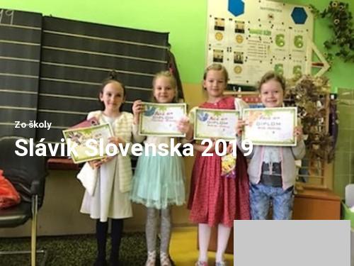14.4.2019 sa v našej škole uskutočnilo školské kolo speváckej súťaže Slávik Slovenska 2019. Do súťaže sa zapojili žiaci, ktorí zaspievali dve ľudové piesne. Súťaže sa zúčastnilo 48 žiakov 1. až 6. ročníka, takže sa súťažilo v dvoch kategóriách: