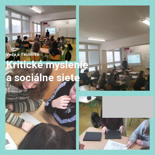 Žiaci VIII. B sa zúčastnili workshopu na tému Kritické myslenie a sociálne siete. Počas 90 minút sa v úvode dozvedeli, na základe vzájomného rozhovoru, základné teoretické informácie ohľadom kritického myslenia. Následne sa rozdelili do skupín, v ktorých si zvolili svoje úlohy a aktívne pracovali na vybraných problematikách tak, aby bolo rozvíjané ich kritické myslenie i vzájomná spolupráca. Cieľom bolo vybudovať si stratégie, podľa ktorých sa budú vedieť kriticky rozhodovať, komu a čomu budú, resp. nebudú na sociálnych sieťach veriť.