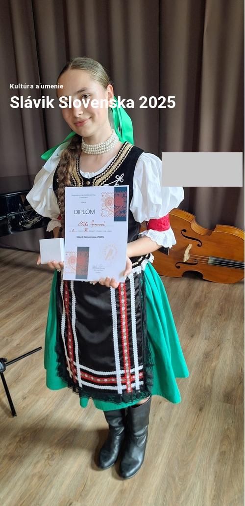 Dňa 29. mája 2025 sa uskutočnil 33. ročník krajského kola celoslovenskej súťaže Slávik Slovenska. Na pódiu sa predstavili tí najšikovnejší speváci z celého Košického kraja – medzi nimi aj naša talentovaná deviatačka Eliška Špinerová, víťazka okresného kola. Eliška svojím nádherným hlasom vyspievala 2. miesto a my sme na ňu nesmierne hrdí! Jej interpretácia slovenských ľudových piesní bola skutočným prejavom úcty k nášmu kultúrnemu dedičstvu.