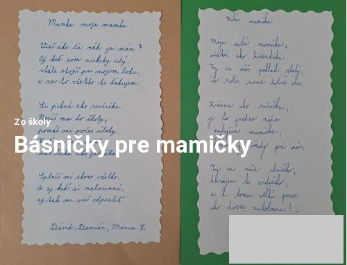 V máji oslavujeme krásny sviatok venovaný mamičkám. Aj z tohto dôvodu sa žiaci 4.C triedy rozhodli pre svoje mamičky napísať básničky. Nech je teda básnička vyjadrením vďaky za Vašu lásku, starostlivosť a obetavosť, milé mamičky.