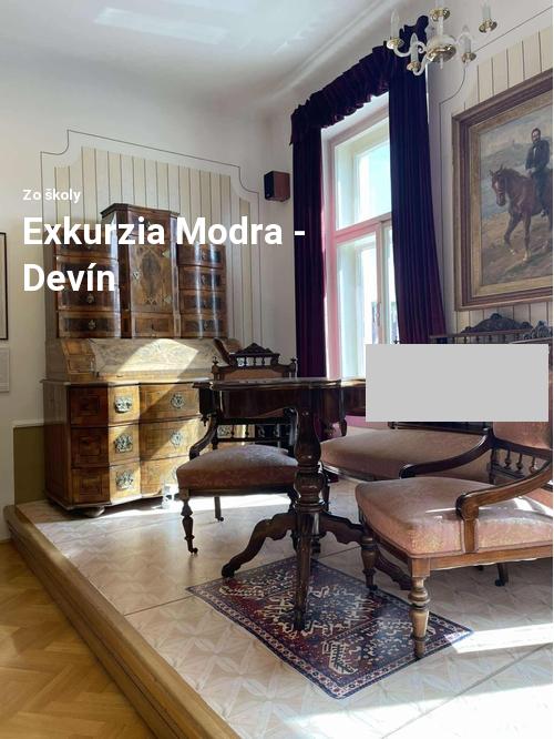 Dňa 23. apríla sme sa my - žiaci tried kvinta a 1.B- spolu s našimi p. profesorkami Černou a p.prof. Kúdelovou zúčastnili exkurzie do Modry a na hrad Devín. Naša cesta bola spojená s poznávaním dejín a osobnosti Ľudovíta Štúra, ktorý je úzko spätý práve s týmito miestami.