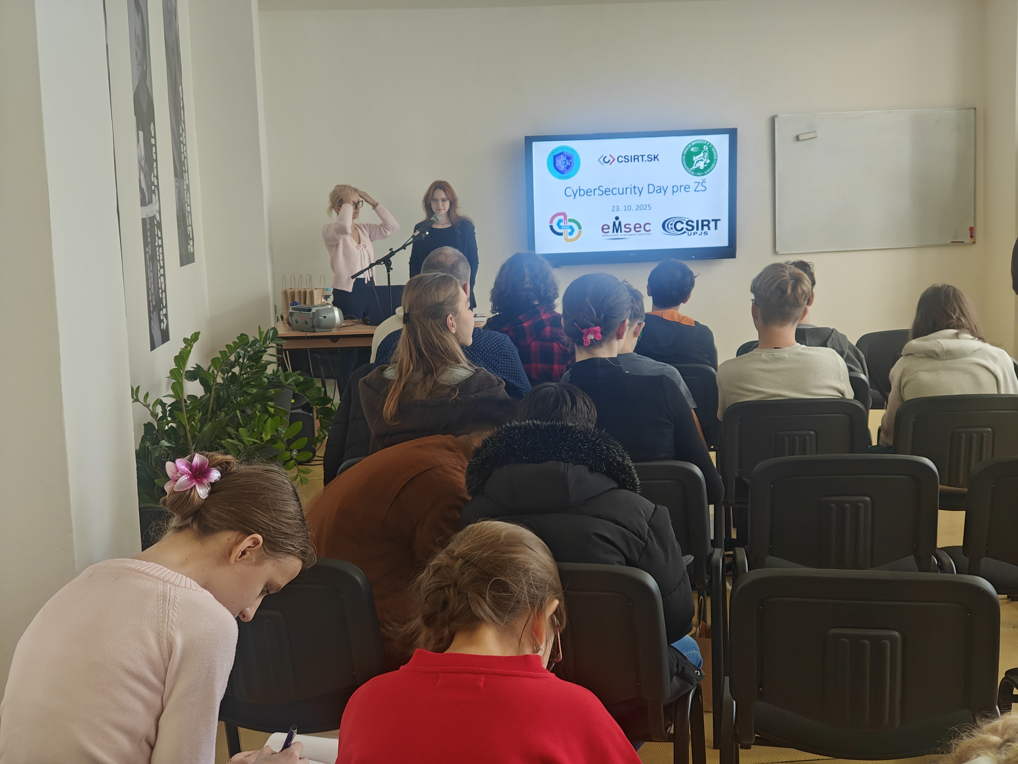 Žiačky 7. A triedy sa 23. 10. 2025 zúčastnili CyberSecurity Day, ktorým ich sprevádzali KyberTím z Gymnázia sv. Košických mučeníkov v spolupráci s tímom CSIRT. Diskutovali a rozšírili si vedomosti o informačnej bezpečnosti, kde sme sa dozvedeli, aké nástroje sú najvhodnejšie pri kyber útoku. Všetky nástroje sme si vyskúšali a overili. Vybraní žiaci sú členmi projektu (Ne)bezpečný internet, ktorý prebieha na našej škole. Týmto workshopom si prehĺbili a upevnili vedomosti na danú tému.