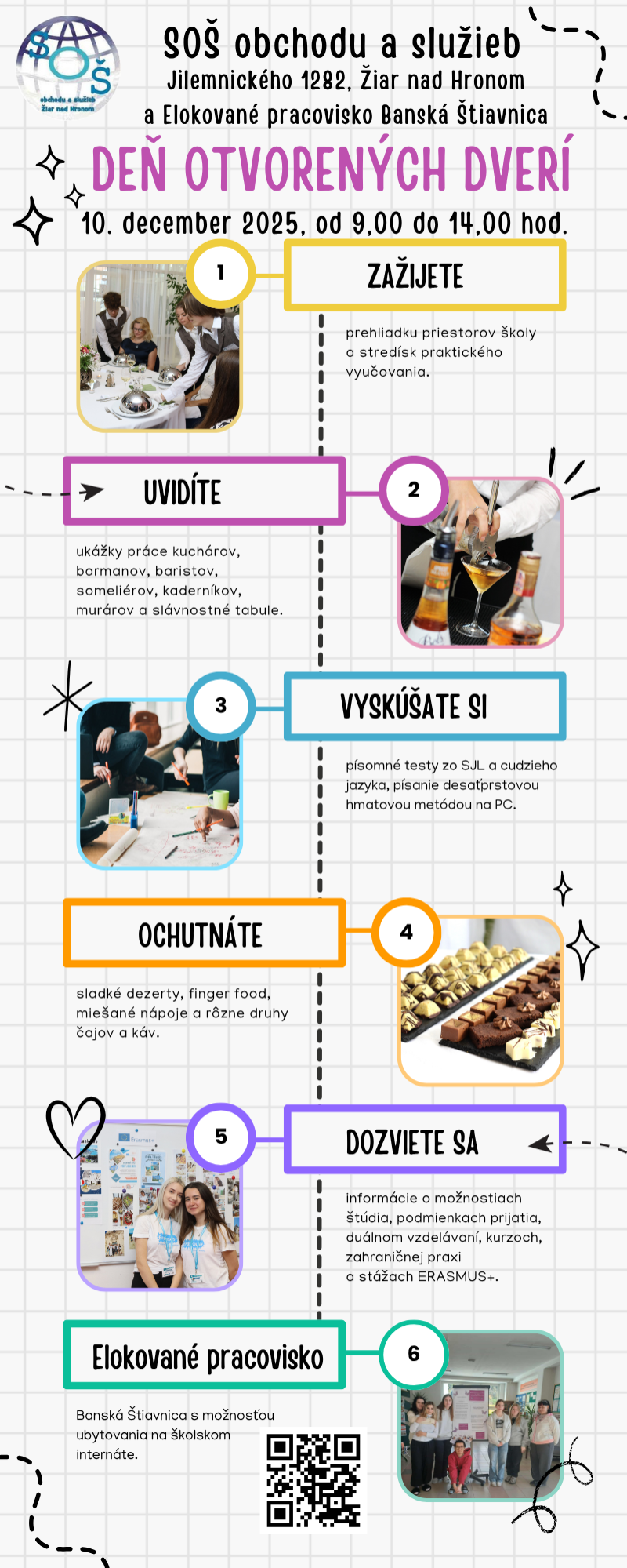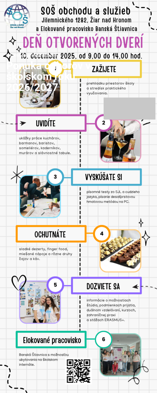 SOŠ obchodu a služieb v Žiari nad Hronom sa od 1. septembra 2025 spojila s Elokovaným pracoviskom, Kolpašská 1856/9 v Banskej Štiavnici, kde je k dispozícií žiakom aj stredoškolský internát.