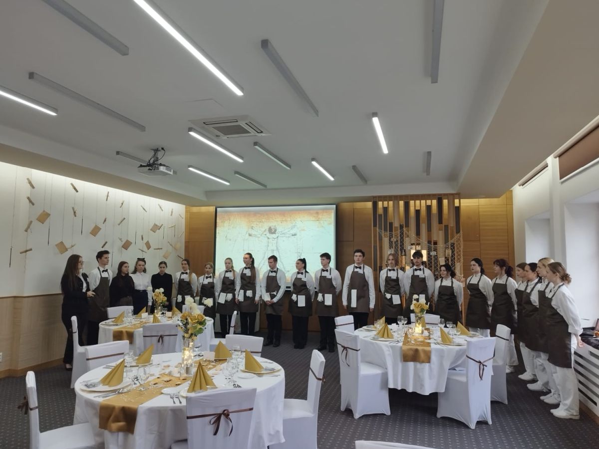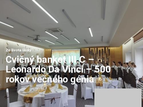 V stredu 12. 11. 2025 sa na našej škole uskutočnil cvičný banket triedy III. C. Niesol sa v duchu témy Leonardo Da Vinci – 500 rokov večného génia. Téma bola zvolená pre jej nadčasovosť, tvorivosť, prepojenie umenia a vedy, ktoré Leonardo symbolizuje. Po príchode hostí nasledoval krátky úvod, v ktorom bola predstavená myšlienka celého podujatia. Trieda si pripravila výzdobu aj program tak, aby priblížila renesančnú atmosféru a zároveň vytvorila príjemné prostredie pre spoločné stretnutie. Obsluha odviedla veľmi dobrú prácu, o plynulý priebeh podávania jedál a nápojov sa postaral manažér odbytového strediska Matej Potočňák. V kuchyni pripravili kuchári, pod vedením manažérky výrobného strediska Kristíny Ščerbovej, chutné a kvalitné pokrmy, na ktorých si všetci pochutili. Banket prebiehal v priateľskej a slávnostnej atmosfére. Študenti mali priestor na neformálne rozhovory, spoločné fotenie a zdieľanie dojmov z príprav a realizácie banketu. Celé podujatie sa vydarilo a bolo pekným zavŕšením spoločnej práce celej triedy. Banket potvrdil, že aj školské akcie môžu byť príležitosťou rozvíjať kreativitu, spoluprácu a praktické zručnosti.