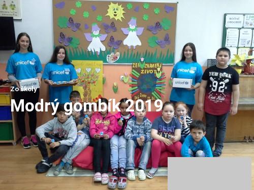V rámci ,,Týždňa Modrého gombíka 2019“ sa žiaci našej základnej školy dňa 21.5.2019 zapojili do zbierky UNICEF, podporili sme deti na východe Ukrajiny. Aj my chceme pomôcť deťom, ktoré nemôžu za to, že ich krajinu trápi vojna, bieda a hlad. Chceme deťom vrátiť úsmev na tvár, radosť a chuť žiť lepšie ako doteraz. Mať radostnejšie a spokojnejšie detstvo. Už 15 rokov organizuje Slovenský výbor UNICEF túto zbierku. My sme sa zapojili v tomto školskom roku do zbierky druhýkrát. Vyzbierali sme 65 €. Medzi žiakmi rozvírila zbierka veľký pocit spolupatričnosti a prispel každý, kto mohol. Každý žiak chcel pomôcť, lebo deti si nezaslúžia, aby trpeli, veď nič zle predsa neurobili. Verím, že aj touto formou nešťastným a smutným deťom na Ukrajine pomôžeme. Mgr.Volčková