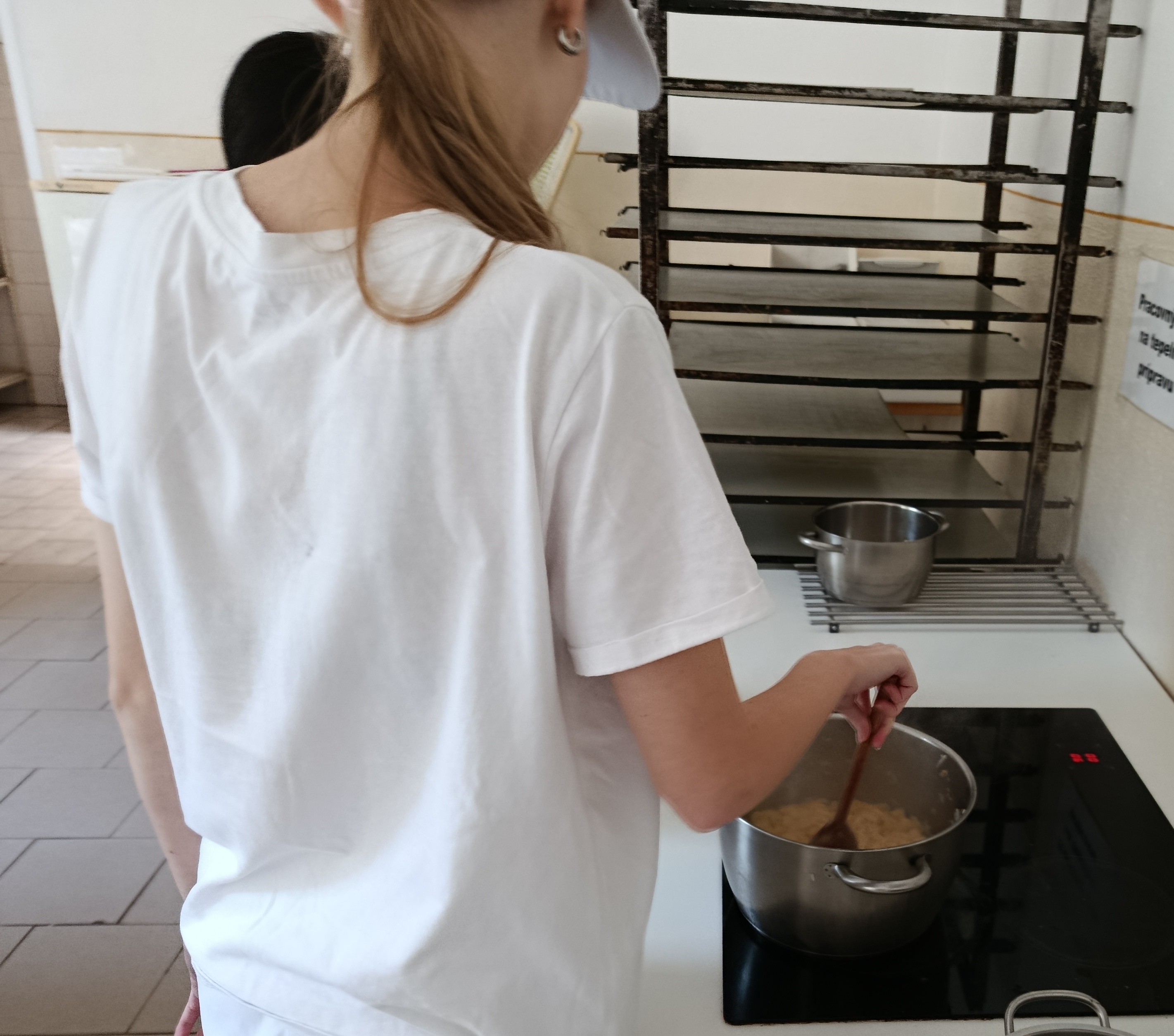 V cukrárni „Snežienka“ sa uskutočnil metodický deň pod názvom „Jesenné jablčné variácie v cukrárni“, ktorý sa niesol v duchu kreativity, tradície a vône dozretých jabĺk. Metodického dňa sa zúčastnili žiaci prvého a tretieho ročníka, ktorí spojili svoje zručnosti a nadšenie pre cukrárske remeslo pri príprave sezónnych dezertov. Cieľom metodického dňa bolo nielen rozvíjať praktické zručnosti žiakov, ale aj podporiť spoluprácu medzi ročníkmi. Skúsenejší tretiaci sa ujali vedenia a mentorstva, zatiaľ čo prváci mali možnosť vyskúšať si nové techniky a naučiť sa recepty, ktoré sú súčasťou tradičnej i modernej cukrárskej tvorby. Žiaci pripravovali tri druhy zákuskov, ktoré opísali chuť jesenných jabĺk: • Jablčné pité – jemné cesto plnené šťavnatou jablkovou plnkou, dochutené škoricou predstavovalo klasiku, ktorá nikdy nesklame. • Maková štrúdľa s jablkami – spojenie maku a jabĺk v chrumkavom štrúdľovom ceste vytvorilo harmonickú kombináciu chutí. • Jablkový šľahačkový zákusok – moderný dezert s nadýchanou šľahačkou, vrstvený s jablkovým pyré a piškótovým základom, ukázal, že aj tradičné suroviny môžu byť súčasťou súčasnej cukrárskej estetiky. Metodický deň sa ukázal ako výnimočná príležitosť na výmenu skúseností, rozvoj odborných kompetencií a prehĺbenie vzťahu k cukrárskemu remeslu. Jesenné jablčné variácie nielen rozvoňali cukráreň, ale aj podnietili chuť tvoriť, experimentovať a učiť sa.