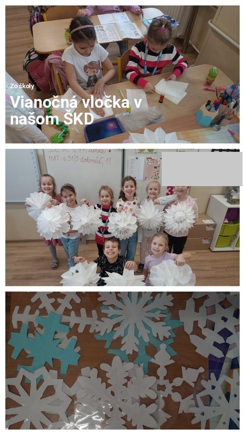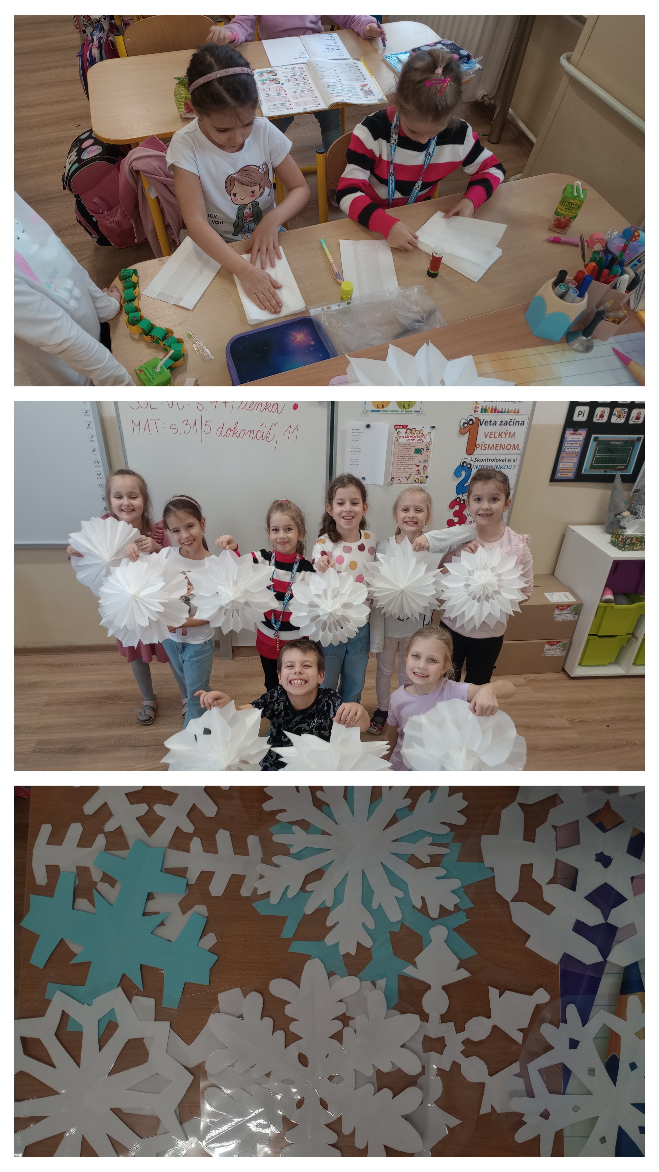V našom školskom klube detí sme sa naladili na zimnú vlnu. Malí šikovníci sa pustili do vystrihovania snehových vločiek od výmyslu sveta – každá jedna je originálna, presne ako naše deti. Netrvalo dlho a chodby našej školy sa premenili na rozprávkovú zimnú krajinu. Veríme, že táto biela výzdoba nám všetkým spríjemní čakanie na tie skutočné vianočné sviatky!