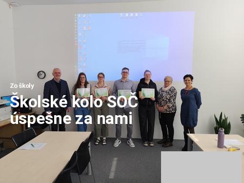 Dňa 25.2. sa na našej škole uskutočnilo školské kolo stredoškolskej odbornej činnosti (SOČ). Táto súťaž má na Slovensku pomerne dlhú tradíciu, tento rok sa konala po 48.-krát. V školskom kole sa predstavili 4 súťažiaci so svojimi odbornými prácami, ktoré úspešne obhájili pred komisiou formou prezentácií. Súťažiaci preukázali nielen znalosti vo svojich témach, ale dokázali i pohotovo reagovať na otázky poroty. Súťažili v 2 odboroch - poľnohospodárstvo a biológia. Najúspešnejšie boli štvrtáčky Simona Kopúnková a Bibiana Mikušová, ktoré so svojou prácou "Vplyv sezónnosti na reprodukciu hovädzieho dobytka" postúpili do krajského kola, ktoré sa uskutoční 10.4. na SOŠ elektrotechnickej v Gbeloch. Dievčatám gratulujeme a držíme palce!