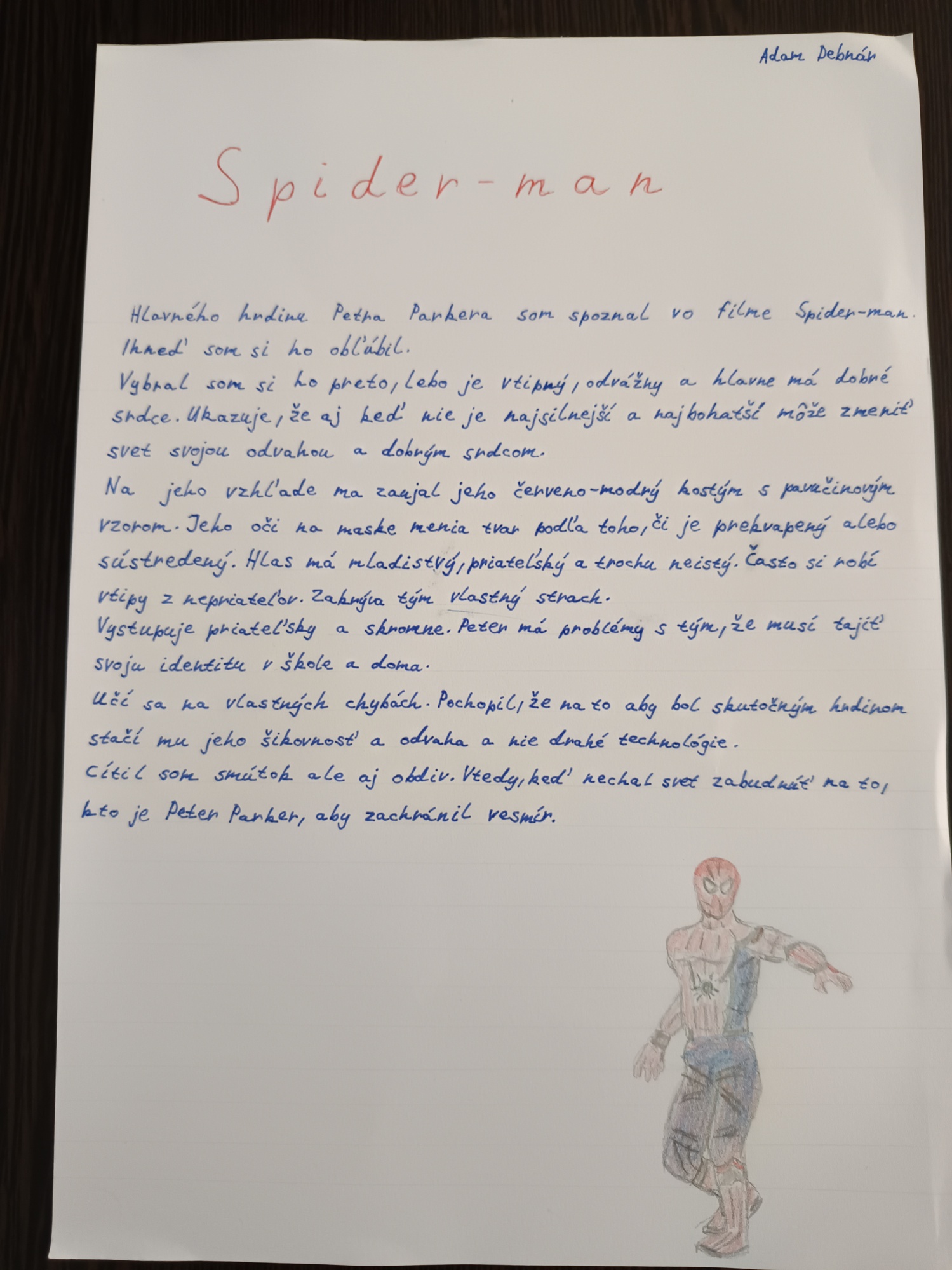 Hlavného hrdinu Petra Parkera som spoznal vo filme Spider–man. Ihneď som si ho obľúbil.