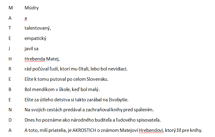 Prečítajte si moju báseň - akrostich, v ktorej nájdete meno osobnosti z našej histórie, podľa ktorej pomenovali marec za mesiac knihy.