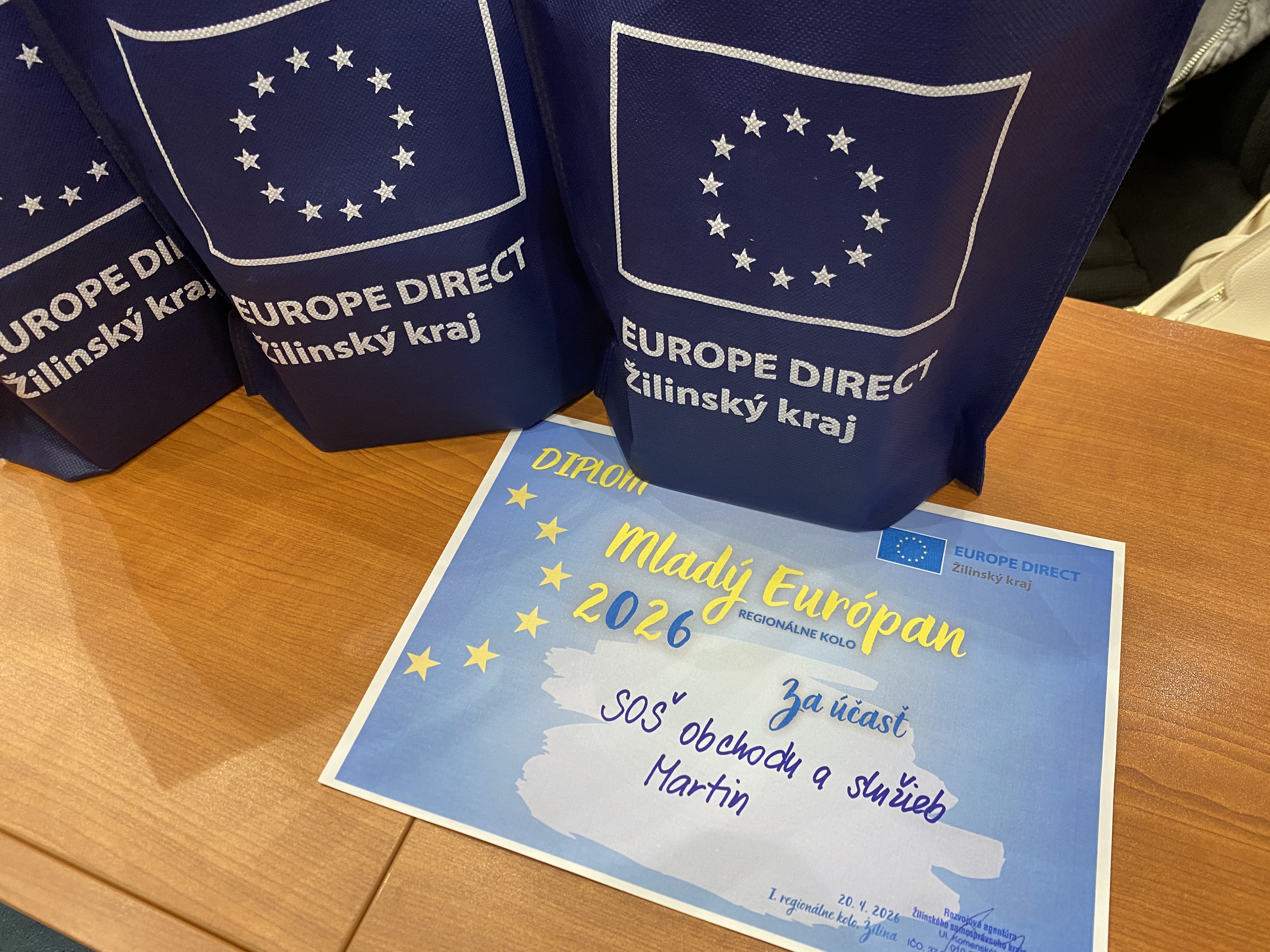 Dňa 20.4.2026 som sa zúčastnila so svojimi spolužiačkami súťaže Mladý Európan 2026, ktorá sa konala v Žiline. Sme študentky druhého ročníka hotelovej akadémie.
