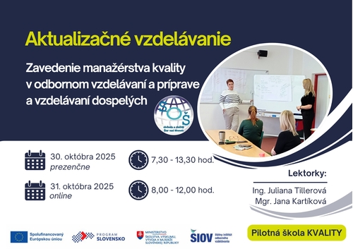 Úspechy školy Sme pilotná škola projektu Zavedenia manažérstva kvality v odbornom vzdelávaní a... 02.12.2025 18:36 0
